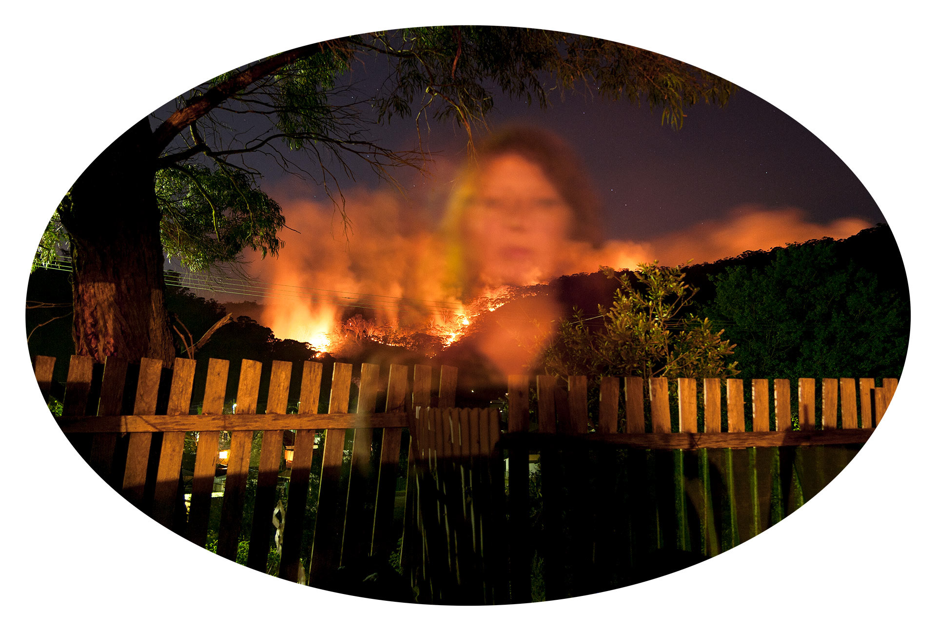 Fire State of Mine consists of 9 photographs captured from within the fireground adjacent to the artist’s home during the devastating State Mine Fire of October 2013. The images are presented as revered memories that mirror the physical presence of fire as a destructive yet beautiful force.